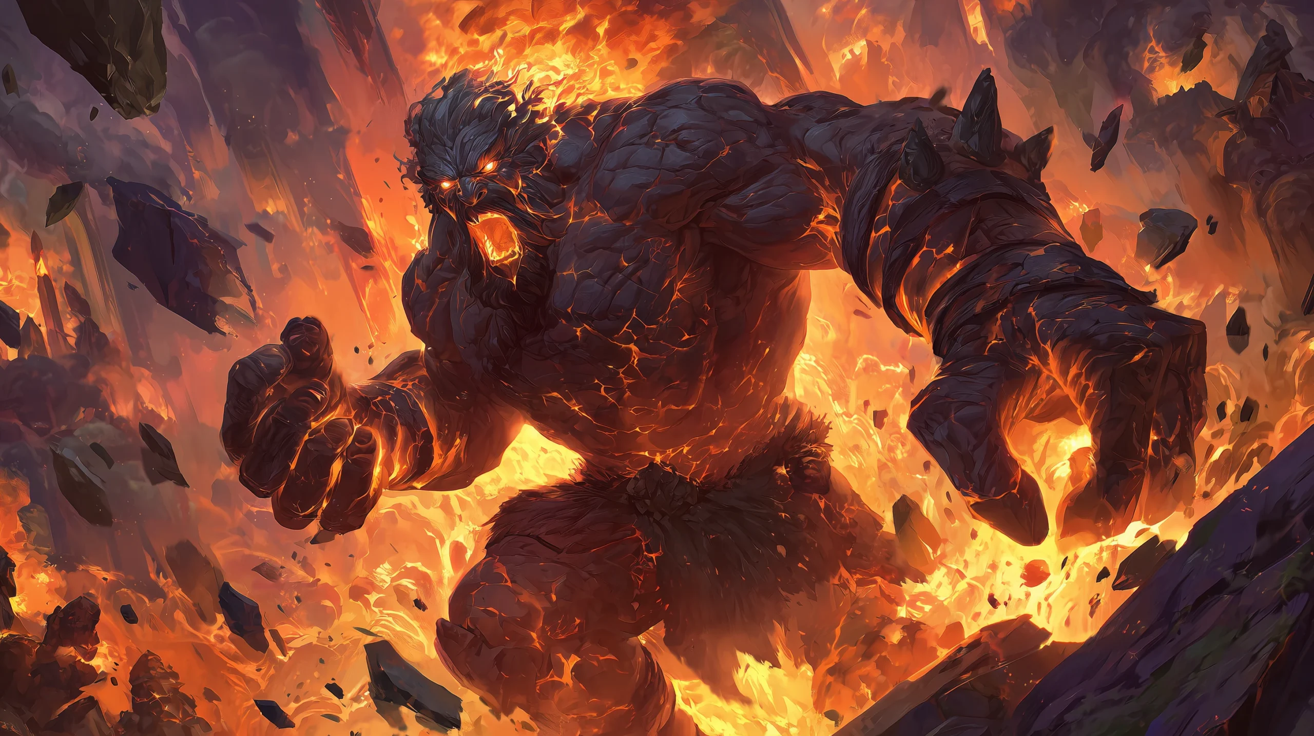 Au plus profond des racines du Mont Ventoupé, bien avant que les Nains ne bâtissent leurs grandes citadelles, une terreur fut emprisonnée. La légende raconte qu’après la mort de la déesse Narruna, une de ses incarnations les plus destructrices – un Géant de Feu massif, incarnation de la rage volcanique pure – fut vaincue par les Avatars de la Terre et de l’Eau.